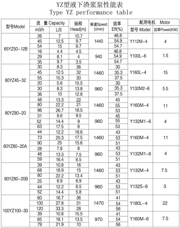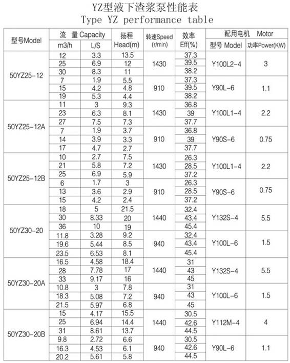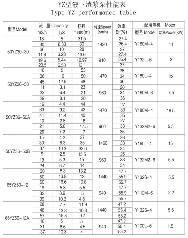 YZ型泵為單級,單吸懸臂式結構,用軸承座,支承座,聯(lián)接管連接泵的水力部件,液體由出液管部件排出,泵的葉輪為半開式葉輪,在葉輪葉片進口延伸處設有攪拌葉片,該泵主要特點是在液下部位的泵軸,有足夠的剛度,葉輪,泵殼之間不設軸承,不采用軸封,可以輸送含有較大濃度固定顆粒的介質(zhì)。泵插入液下的長度在800-2000之間,如果需要可以配帶吸入管。軸封采用較大泵插入液體中運行,不設軸封,傳動由立式電動機安裝在電機支承和支承座上,用聯(lián)軸器與泵相連。